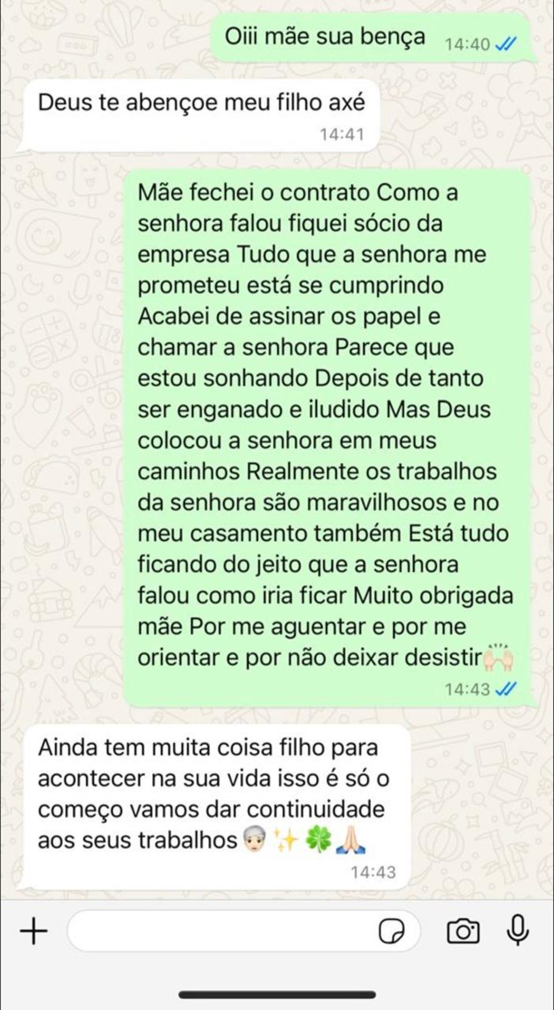 Acredito que cada pessoa tem o potencial de melhorar sua vida, mas nem todos possuem as ferramentas necessárias para isso.fui eleita uma das melhores mães de santo por mais resultados alcançado no Brasil e no exterior